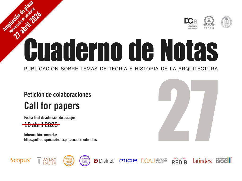 Revista académica de investigación del Departamento de Composición Arquitectónica de la ETSAM sobre temas de Composición, Teoría e Historia de la Arquitectura. Publica contribuciones presentadas mediante una convocatoria pública y sujetas a un proceso de revisión por pares y está dirigida tanto a ámbitos académicos como a profesionales y público en general interesado en estas áreas.